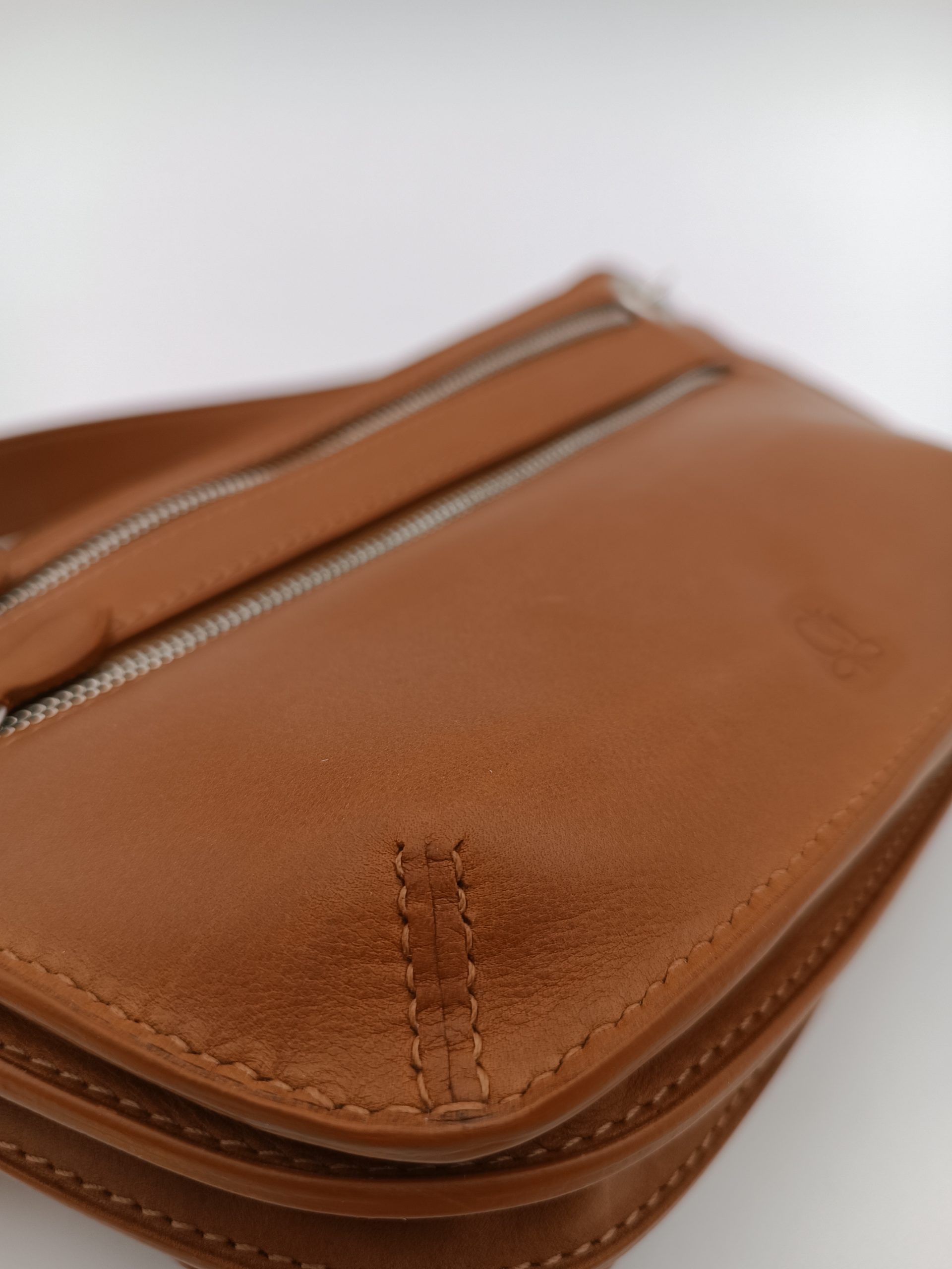 Dimensions : 21×14,5×3,5 cm. Deux fermetures de 20cm sur le devant. Fermeture de 15cm où 20cm au dos