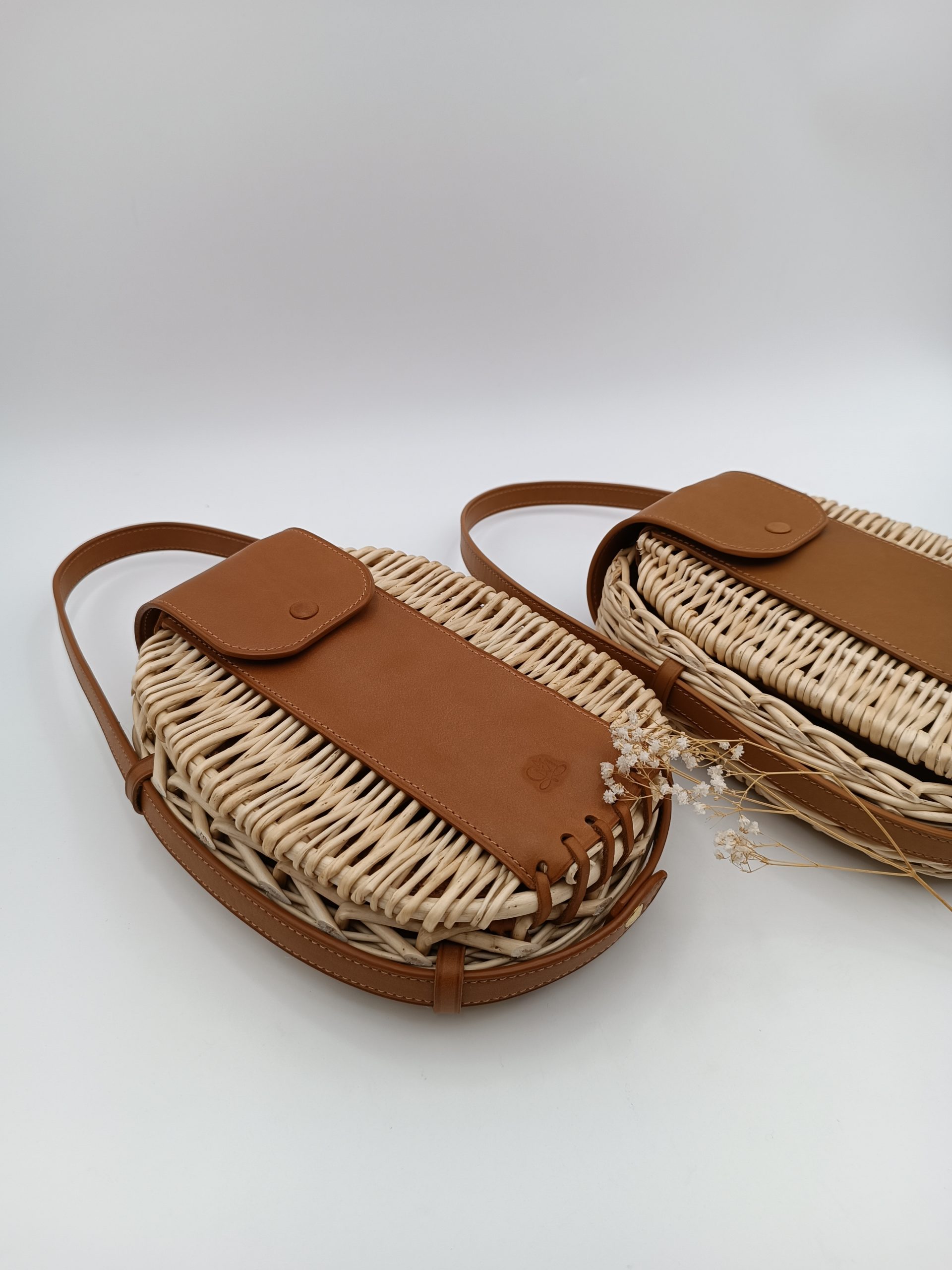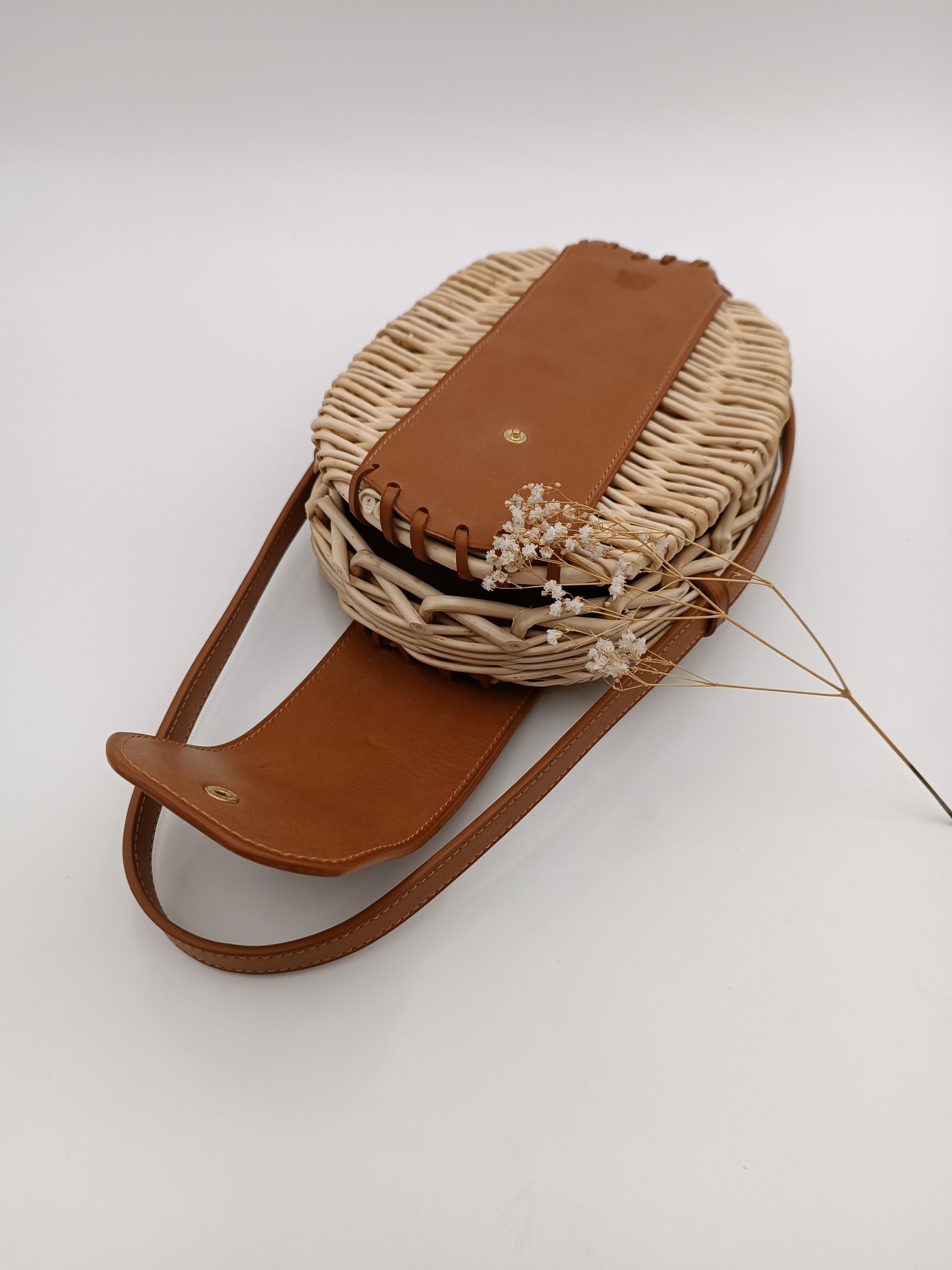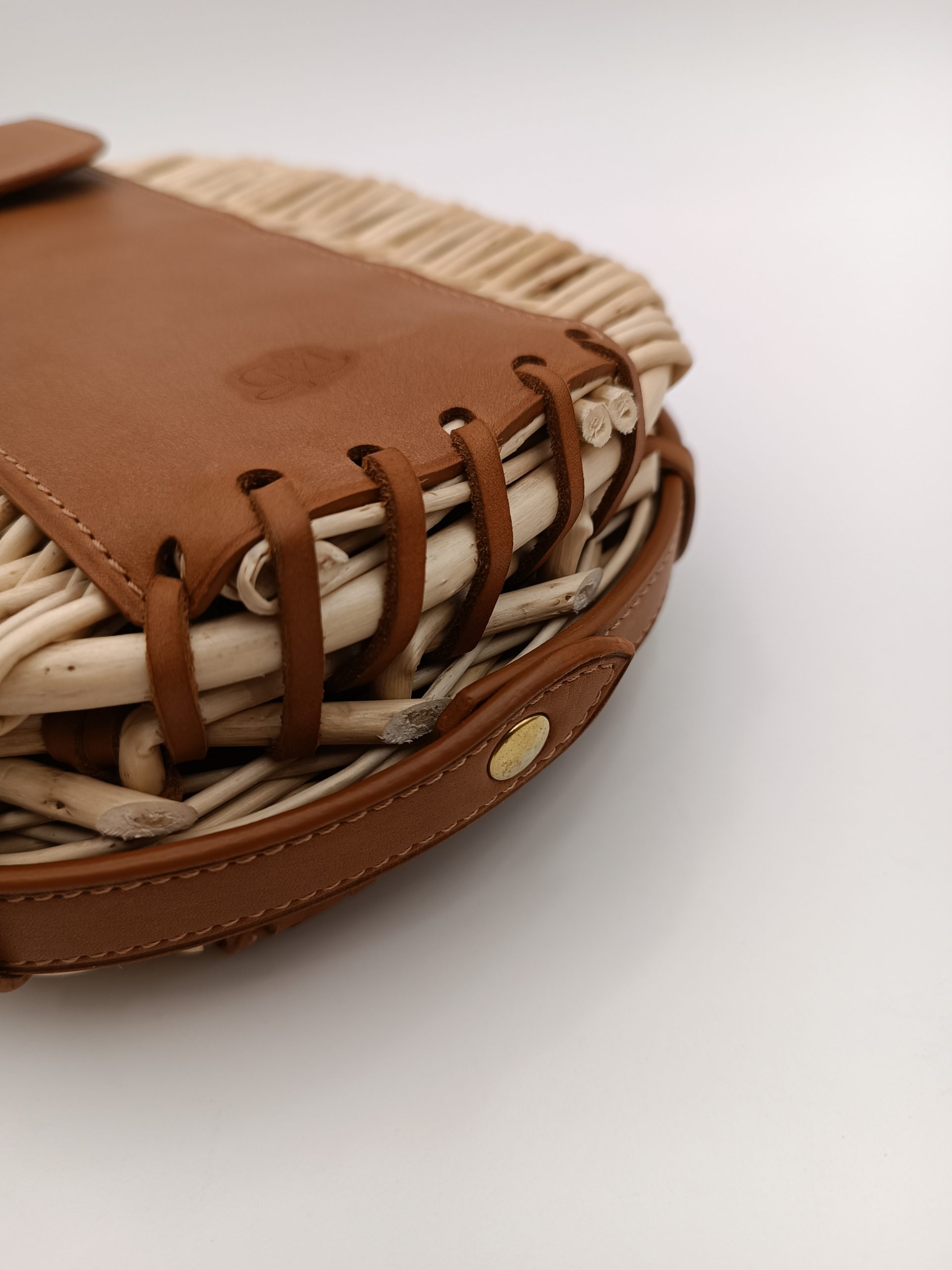 Le fruit d’un travail de collaboration entre deux artisanes, OSER est un sac qui mélange l’osier, et le cuir. Vous retrouverez un osier français et local travaillé par Emilie Massonnet, une Vannière aux multiples talents. Ici, le travail du cuir a été créé pour s’intégrer au mieux à la structure en osier, vous retrouverez à l’intérieur de ce sac suffisamment de place pour y glisser vos clés, votre boîtier à lunette, ainsi que vos papiers d’identité et vos cartes.