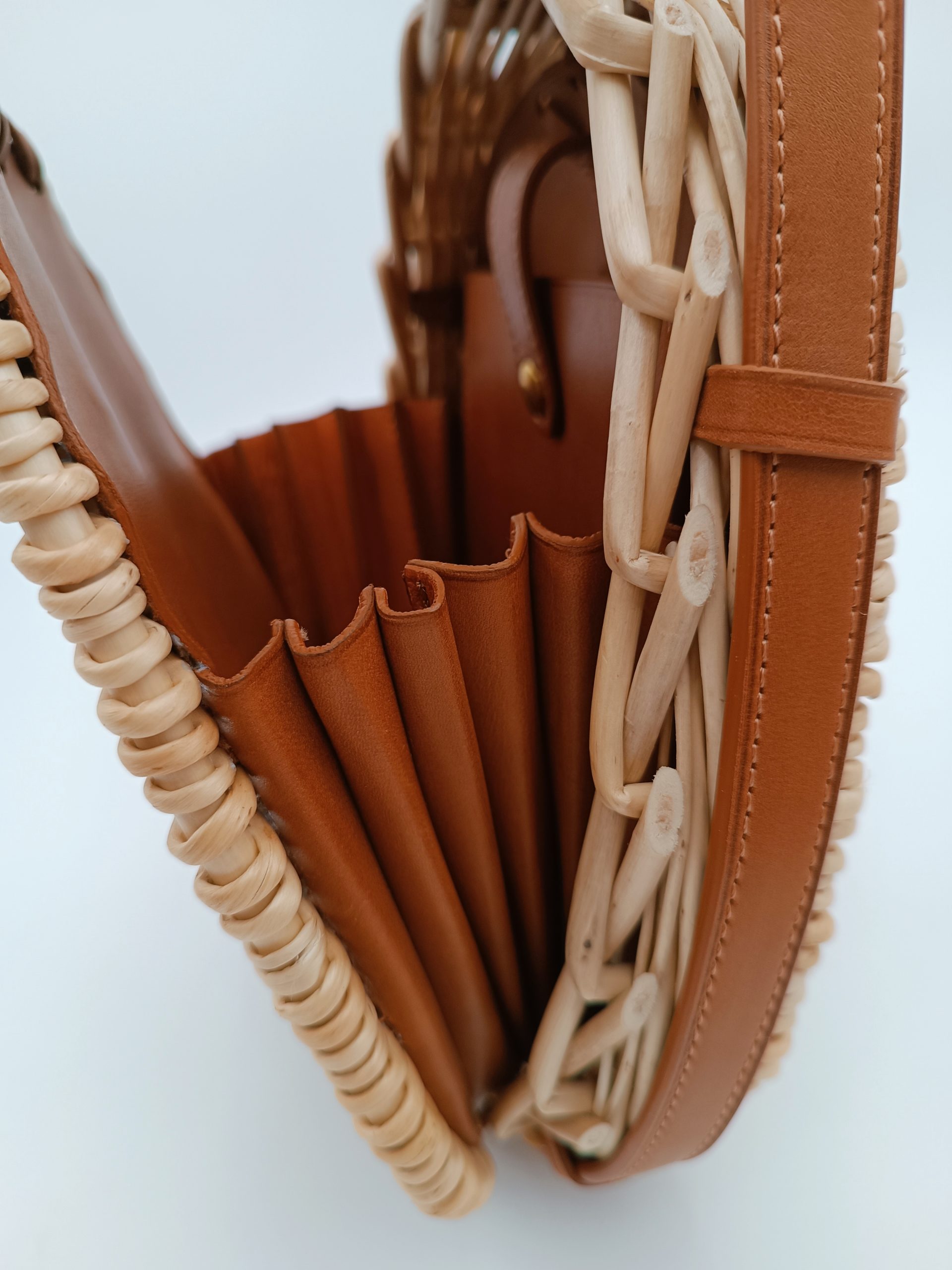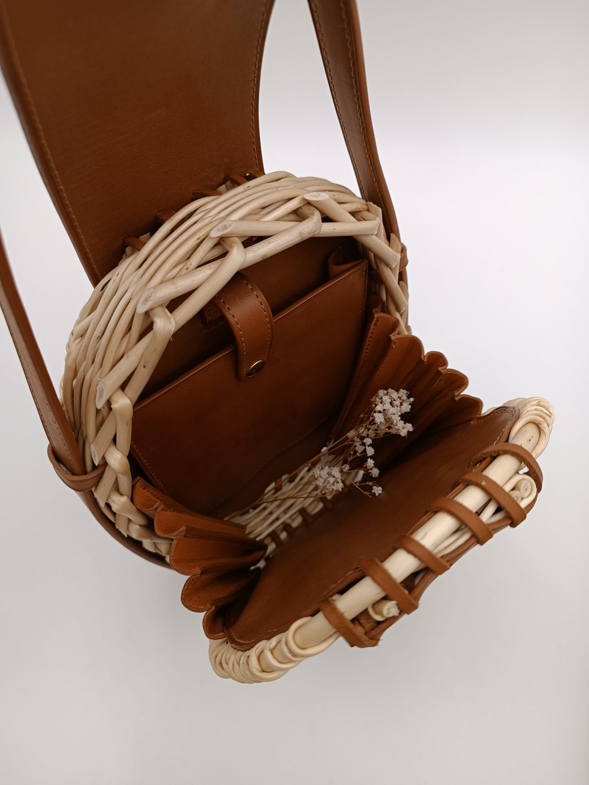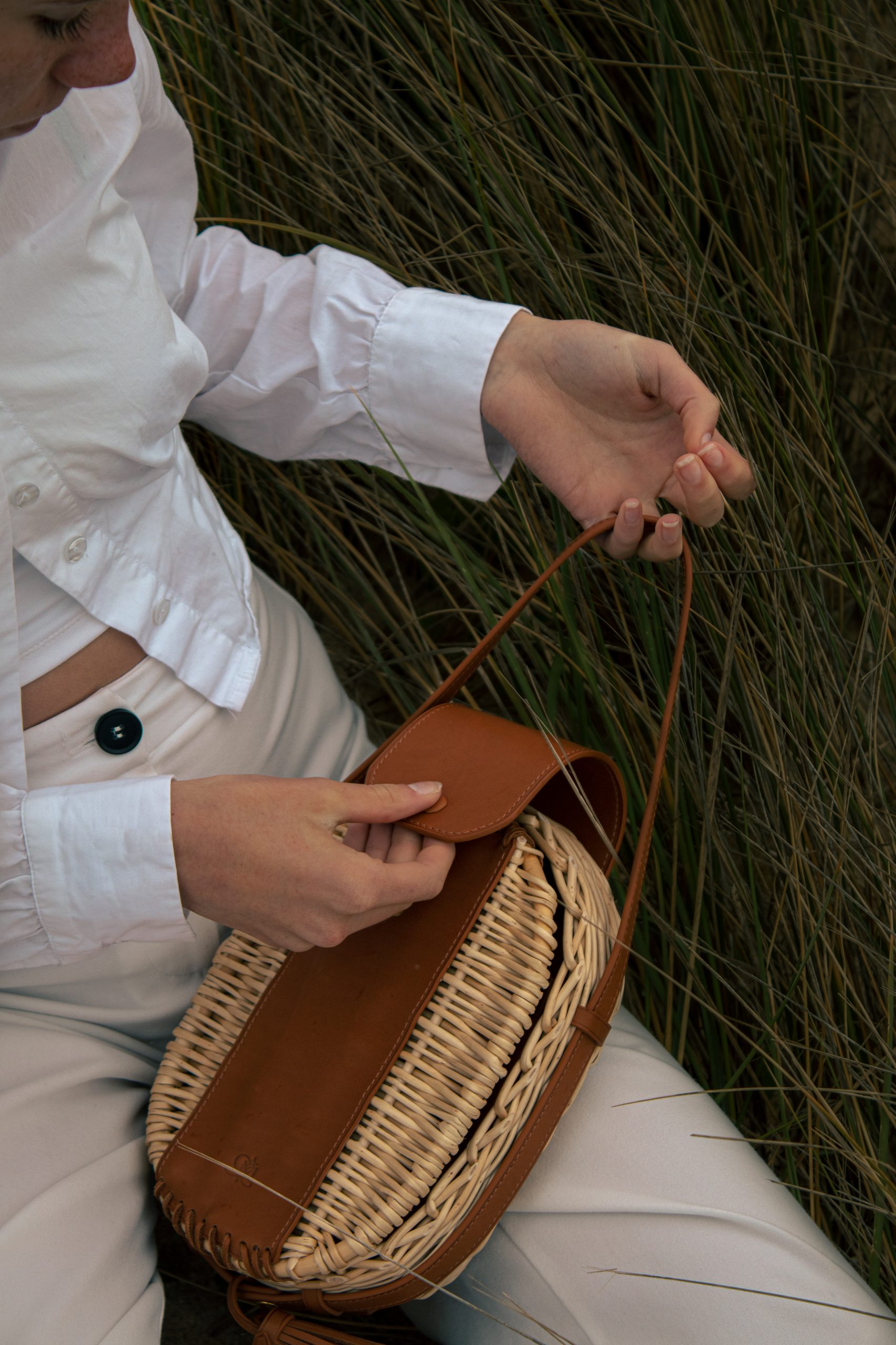 Le fruit d’un travail de collaboration entre deux artisanes, OSER est un sac qui mélange l’osier, et le cuir. Vous retrouverez un osier français et local travaillé par Emilie Massonnet, une Vannière aux multiples talents. Ici, le travail du cuir a été créé pour s’intégrer au mieux à la structure en osier, vous retrouverez à l’intérieur de ce sac suffisamment de place pour y glisser vos clés, votre boîtier à lunette, ainsi que vos papiers d’identité et vos cartes.
